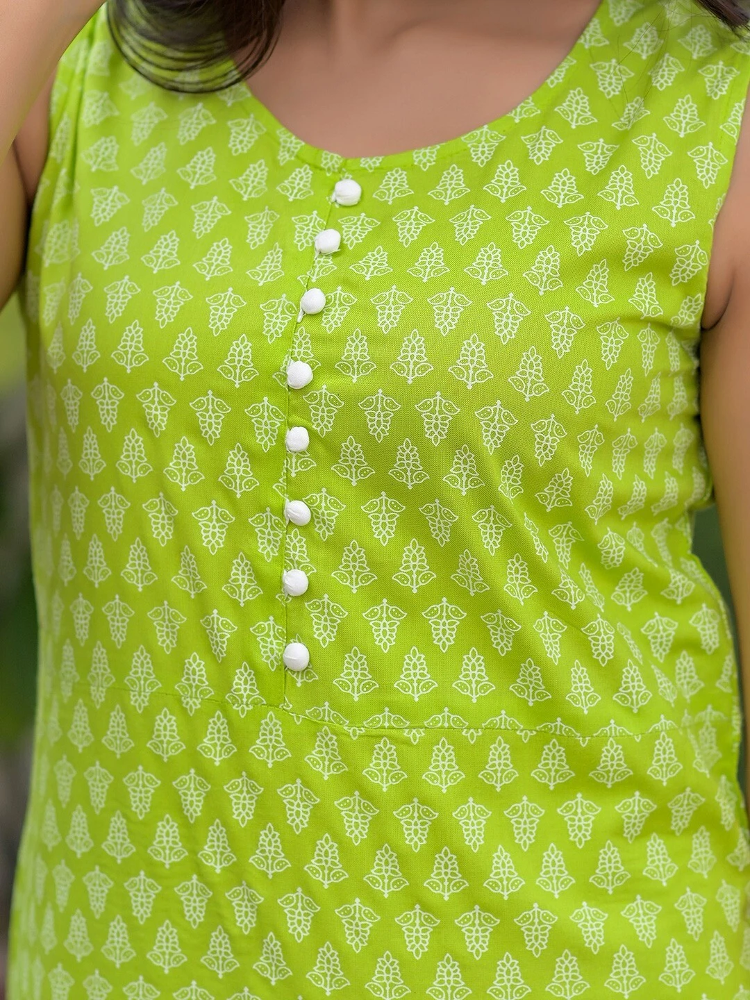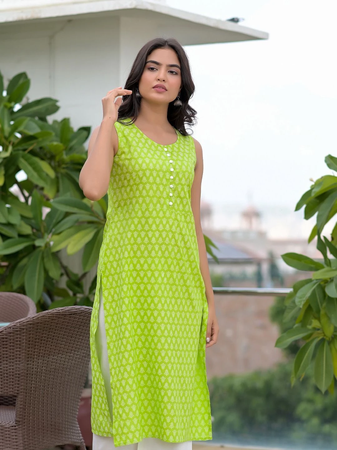 Refresh your ethnic wardrobe with this beautifully designed Green Printed Sleeveless Straight Long Kurti for Women. Tailored from soft and breathable Viscose Rayon, this kurti offers all-day comfort without compromising on style.