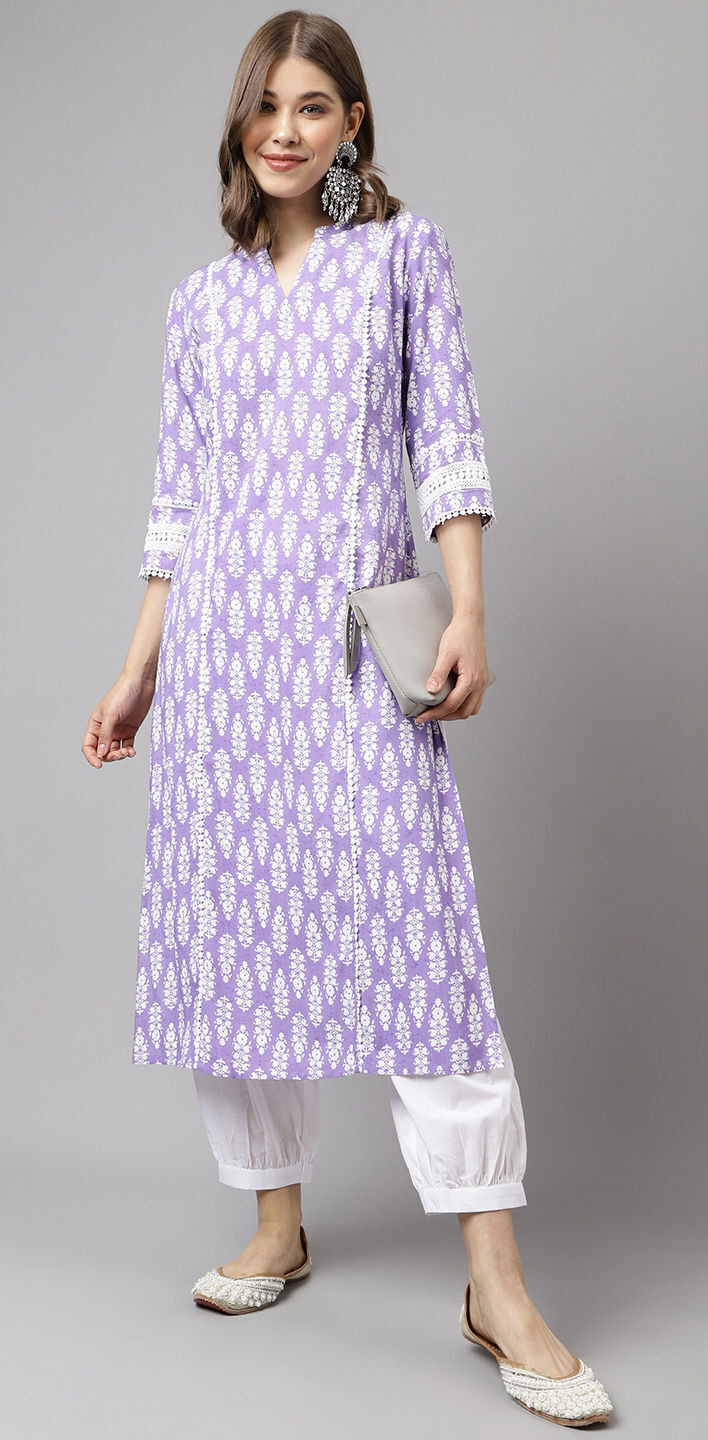 Women’s Purple Printed Straight Long Kurti | Viscose Rayon | Round Neck | Casual Ethnic Wear